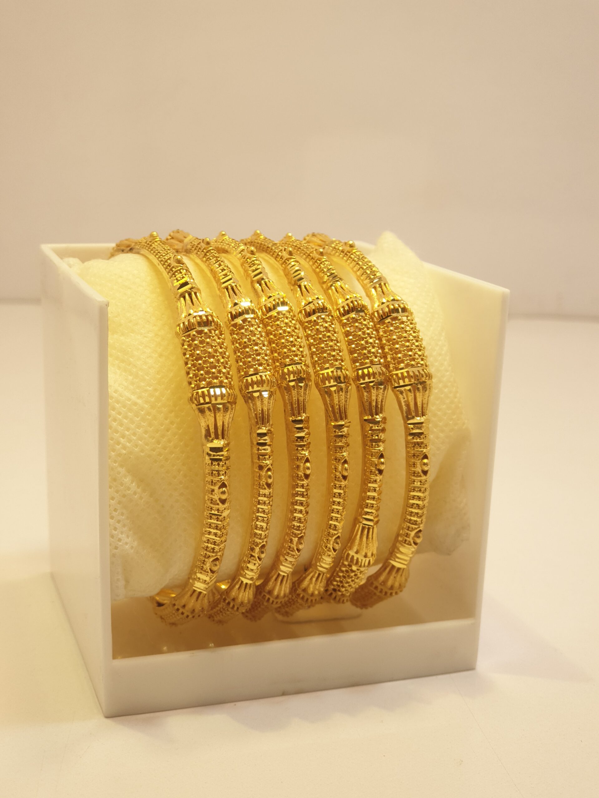 Elevate your everyday and festive look with this elegant 6-Piece Gold-Plated Bangle Set. Designed with a smooth, glossy finish, these bangles offer a timeless appeal that beautifully complements any outfit. Crafted with high-quality gold plating, they deliver a rich, real-gold look—perfect for both traditional and modern styles.