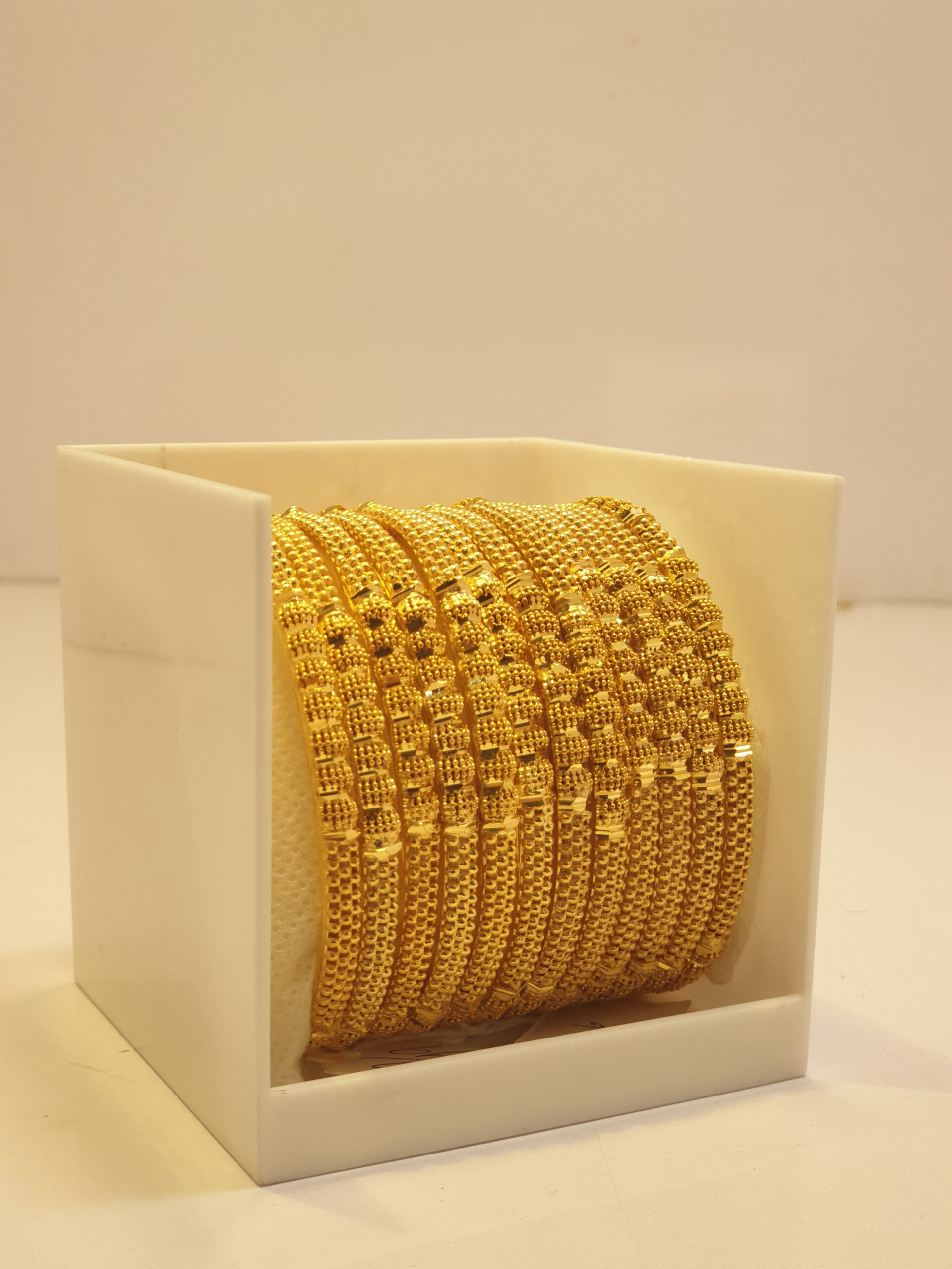 Make every moment shine with our Gold-Plated 12-Piece Bangle Set, a beautifully crafted gold-replica collection designed to mirror the elegance of real gold jewelry. Each bangle is plated with high-quality gold polish, offering a radiant glow and long-lasting shine. Whether worn as a full stack or mixed and matched, this versatile set adds sophistication to weddings, festivals, and everyday wear. Comfortable, lightweight, and tarnish-resistant — the perfect blend of tradition and modern charm.